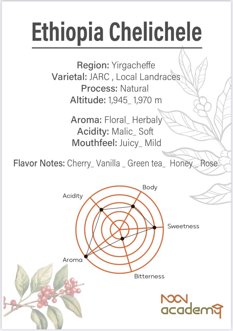 این قهوه از ایستگاه شستوشوی چلچله (Chelchele Washing Station) واقع در روستای چلچله در منطقهی کوچره (Kochere) از ناحیهی مشهور یرگاچف (Yirgacheffe) در اتیوپی بهدست میآید.